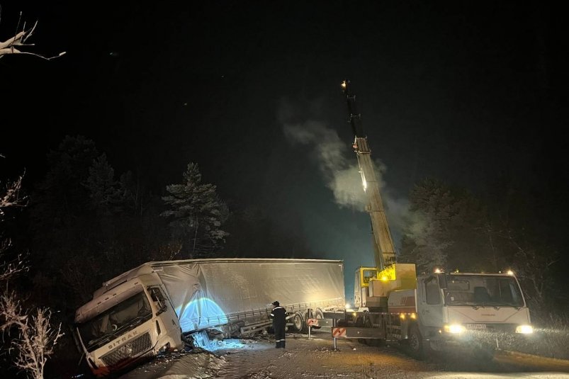 UlanMedia, 18 января. В Буряти на федеральной трассе Р-258 "Байкал" на 269–271 км в сторону Иркутска временно перекрывали движение из-за ДТП с двумя фурами. Сейчас транспорт пропускают в реверсивном порядке. Один большегруз уже отбуксировали, второй ожидает подъемный кран.