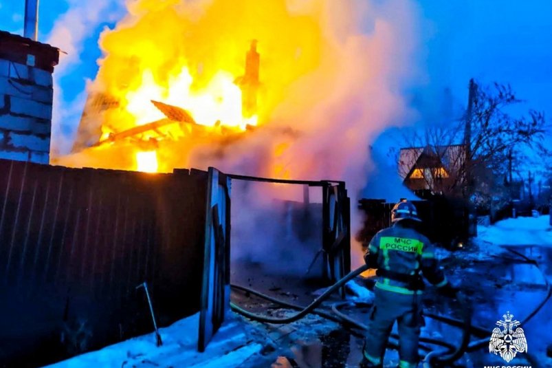 Возгорание произошло вечером на улице Журавлиная. На место выехали 29 спасателей и 8 единиц техники МЧС России. Площадь пожара составила 85 квадратных метров.