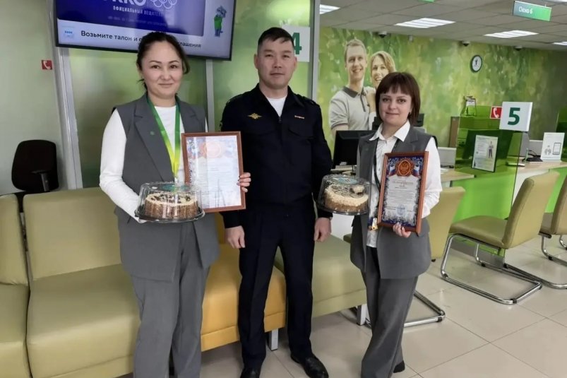 Заместитель начальника отдела — начальник полиции МО МВД России "Хоринский" Иннокентий Полхосов вручил банковским специалистам благодарственные письма и сладкие подарки.