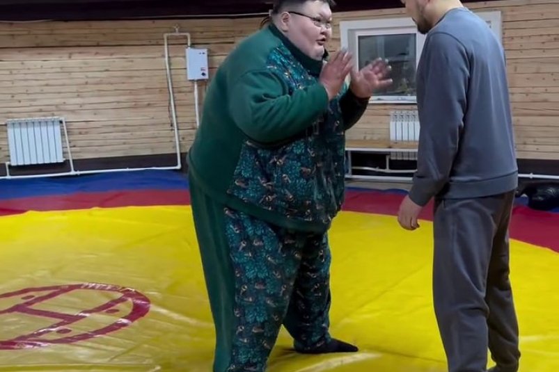 Анатолий Михаханов вошёл в историю как самый крупный сумоист в мире. Он выступал в Японии и завершил карьеру в 2018 году, после чего вернулся на родину. Тагар Намсараев — успешный самбист, боксёр и боец MMA, известный по участию в телешоу "Титаны". Видео совместной тренировки он опубликовал в соцсетях.