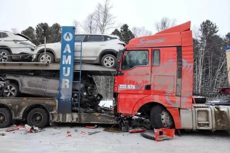В Бурятии в аварии с автовозом пострадал водитель и несколько автомобилей. Фото: ГИБДД по Бурятии