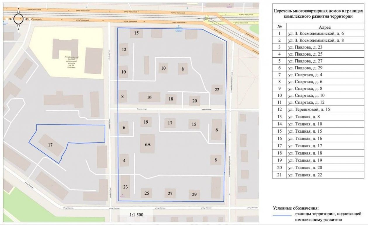 Новую зону жилой застройки предложено включить в границах улиц Зои Космодемьянской, Павлова, Спартака и Терешковой. Там находятся 21 многоквартирный дом, в основном старые деревянные, два из них — аварийные. Для старта проекта нужно согласие двух третей собственников в каждом доме.