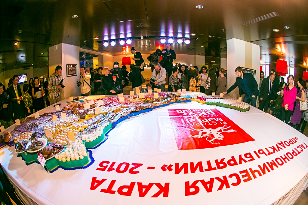 Мировой рекорд установили в Бурятии, создав гигантскую гастрономическую карту республики, размеры которой составили пять на 3,48 метра. Создание гастрономической карты приурочили к открытию фестиваля "Вкус Бурятии". Карту составили местные сельхозтоваропроизводители из региональных продуктов и национальных блюд - традиционных бууз, сметаны, молока, рыбы, мяса, колбасы и многого другого. О том, как происходила фиксация рекорда и какие гастрономические изыски представили на карте, читатели ИА UlanMedia смогут увидеть в фоторепортаже с места событий.
