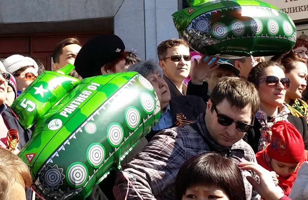 В целом, судя по обилию "Пантер" и "Тигров" в праздничной толпе, горожане едва ли обратили внимание, что конкретно они покупают. К слову, стоимость одного такого шара варьировалась от 150 рублей. Множество людей с этими шарами прошли строем и в Бессмертном полку.