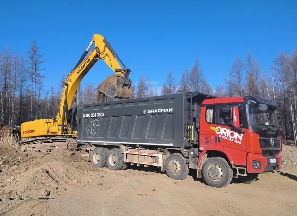 Всего задействованы один 30-тонный экскаватор и три самосвала вместимостью свыше 30 м³ каждый. Планируется отсыпать грунтом около 15 км дороги. За одну смену водители выполняют порядка 20 рейсов.