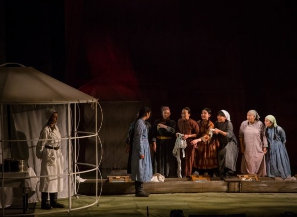 UlanMedia, 7 ноября. 13 и 14 ноября на сцене театра имени Хоца Намсараева состоится уникальное событие — покажут спектакль "Халхин Гол. Тангариг" в особой версии с участием актеров из Монголии. Это не просто повтор известной постановки, а новое прочтение одной из самых трогательных историй XX века — истории девочек, которые в 1939 году вынесли на своих плечах ужас войны.