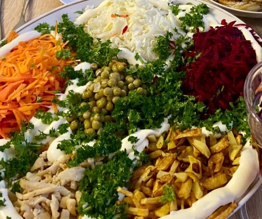 Замените майонез на йогурт или масло — салат продержится дольше и будет легче. Выкладывайте на стол малыми порциями, убирайте в холодильник сразу после ужина. Готовьте столько, сколько съедите за ночь — никаких заморозок!