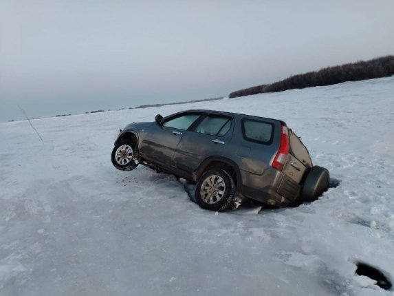 Ранее автомобиль провалился под лед на озере Гусиное в Бурятии. Водитель был в машине один и самостоятельно выбрался на поверхность.
