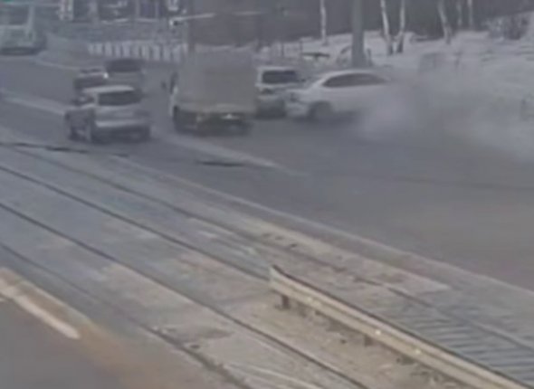 На видео, опубликованном комитетом по транспорту, водитель белого японского автомобиля при перестроении не справился с управлением. На скорости он вырулил на крайнюю полосу и въехал ограждение. ДТП случилось на ул. Ербанова напротив офисного центра "Куб".