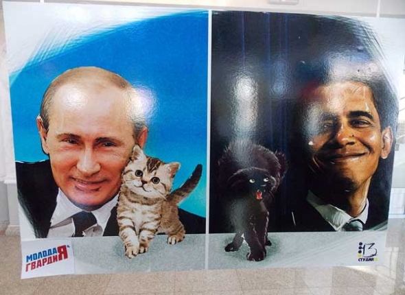"Мы решили сделать выставку в молодежном формате. Это федеральная выставка, и Бурятия – уже третий регион, где она проводится. Мы хотим, чтобы молодежь могла таким образом взглянуть на сегодняшние события. Сама идея родилась в "Молодой гвардии". Там есть "Студия 13", где ребята собираются и такими картинами показывают отношение к современной политике", - рассказал Замбал Санжиев.