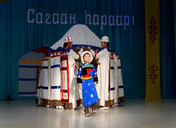 В Улан-Удэ продолжаются праздничные мероприятия, посвященные Сагаалгану. 12 февраля в Городском доме детского юношеского творчества прошел познавательный концерт для школьников города. Сюжетами для хореографических постановок стали бурятские национальные игры, обучение девушек приготовлению блюд, шитью и поддержанию уюта в юрте. Сказочный персонаж Будамшуу узнал, кто среди детей самый смекалистый, а затем угостил сладкими подарками самых ловких. Символ 2016 года – Обезьяна научила детей двигаться в стиле тропических зажигательных танцев, а мультипликационный герой дед Очир рассказал о 12 животных Восточного календаря. Так творчески дети продолжают знакомиться с традицией празднования Белого месяца в Улан-Удэ, сообщает ИА UlanMedia.