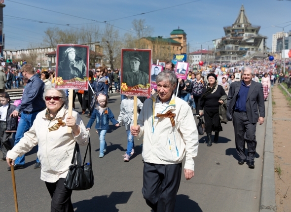 UlanMedia, 10 мая 2016. Ежегодно международная общественная акция "Бессмертный полк" собирает все больше и больше родственников фронтовиков. В 2014 году, в первый год проведения акции, было около 5 тысяч участников. В 71-й день Победы около 20 тысяч человек встали в колонну "Бессмертного полка" и пронесли портреты героев от площади Советов до площади Революции. Возглавили шествие военнослужащие и дети с масштабной копией Знамени Победы, которую привезли участники автомарша "Звезда нашей Великой Победы". Во время шествия движение прекратили даже трамваи, сообщает ИА UlanMedia.
