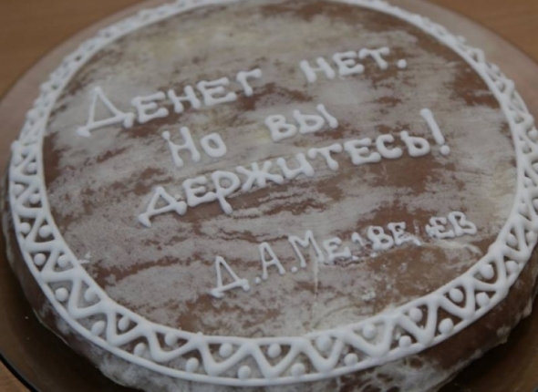 "Несколько дней назад предложил улан-удэнскому производителю сувенирных печатных пряников использовать мем Медведева: "Денег нет, но вы держитесь!" Пока ездил с французским журналистом по Бурятии, ребята оперативно реализовали идею. От покупателей отбоя нет. Пряники уже увозят в подарок по городам и весям России. Тоже сегодня прикупил себе очередной пряничек — с перлом премьер-министра) Очень вкусный — свежий, ароматный, ручная работа. Сразу настроение поднялось, стал немного счастливее", — рассказал на своей странице в соц.сети журналист Аркадий Зарубин.